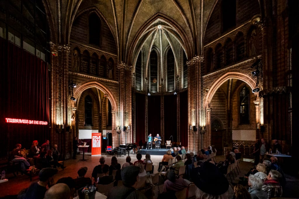 Boekpresentatie met diverse artiesten en sprekers.