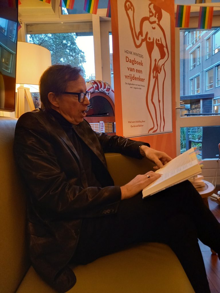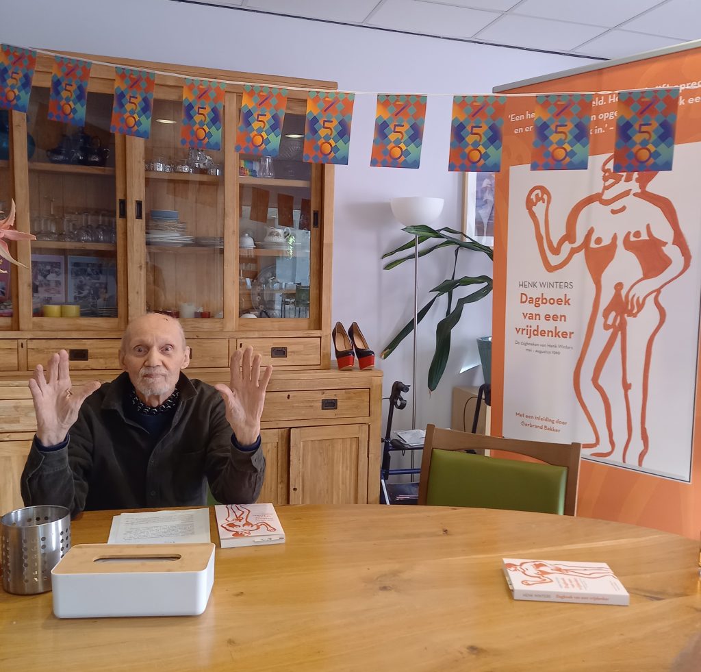 Bewoner Theo zit er al helemaal klaar voor. We zijn op een rustige zaterdagmiddag te gast bij Rozeneiland, een eigen thuis voor queer ouderen in het Dr. Sarphatihuis aan de Roetersstraat in Amsterdam. Het is een feestje om deze geweldige mensen voor te mogen lezen. Er kwamen verrassende leuke en ontroerende verhalen los uit hun jonge jaren tegen de achtergrond van de revolutionaire jaren eind jaren ’60.